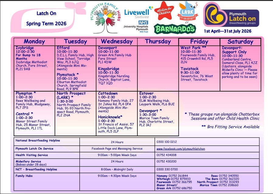 Support is available via the Plymouth Latch On Facebook page (https://www.facebook.com/PlymouthLatchon/)